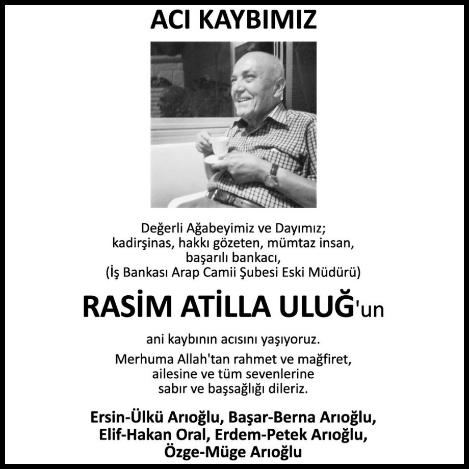 Rasim Atilla Uluğ20 Ocak 2015Oya Güneyman Kozlu22 Ocak 2015 İfakat Sel 21 Ocak 2015 Acılarımız paylaştıkça azalır. Anılarımız saklandıkça kalıcı olur. Facebook Twitter Google+ Pinterest Yazdır E-mail Pocket